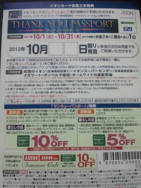 イオンの新サービス、「サンキューパスポート」は明日がお得です!