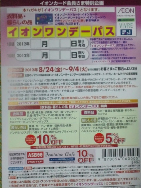 衣料品は、ワンデーパスポートで購入する方が、お客様感謝デーの5%オフよりお得です。