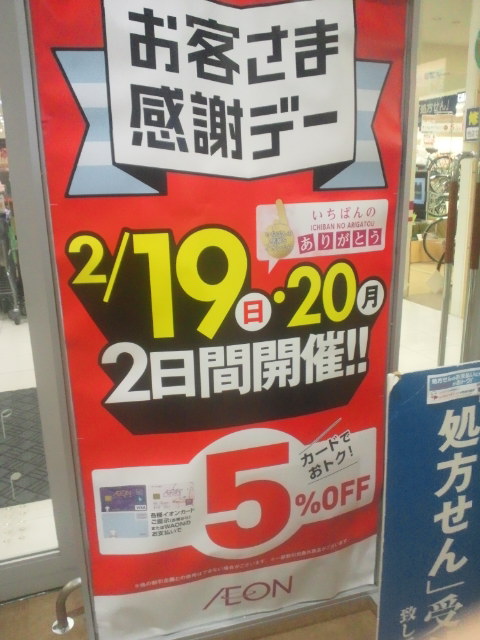 今月は、30日が無いためか、2月のイオンお客様感謝デーは、19日と20日になります。